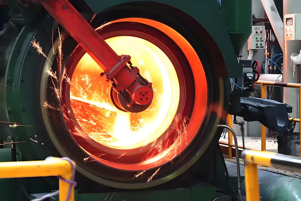 Sa ilalim ng pagkilos ng puwersa ng sentripugal na katumbas ng sampu -sampung o kahit na daan -daang beses ang bigat ng gravity, ang tinunaw na metal ay sumunod sa pader ng amag upang makabuo ng isang guwang na cylindrical na hugis, at nagpapatibay at nag -crystallize sa ilalim ng presyur na ito.